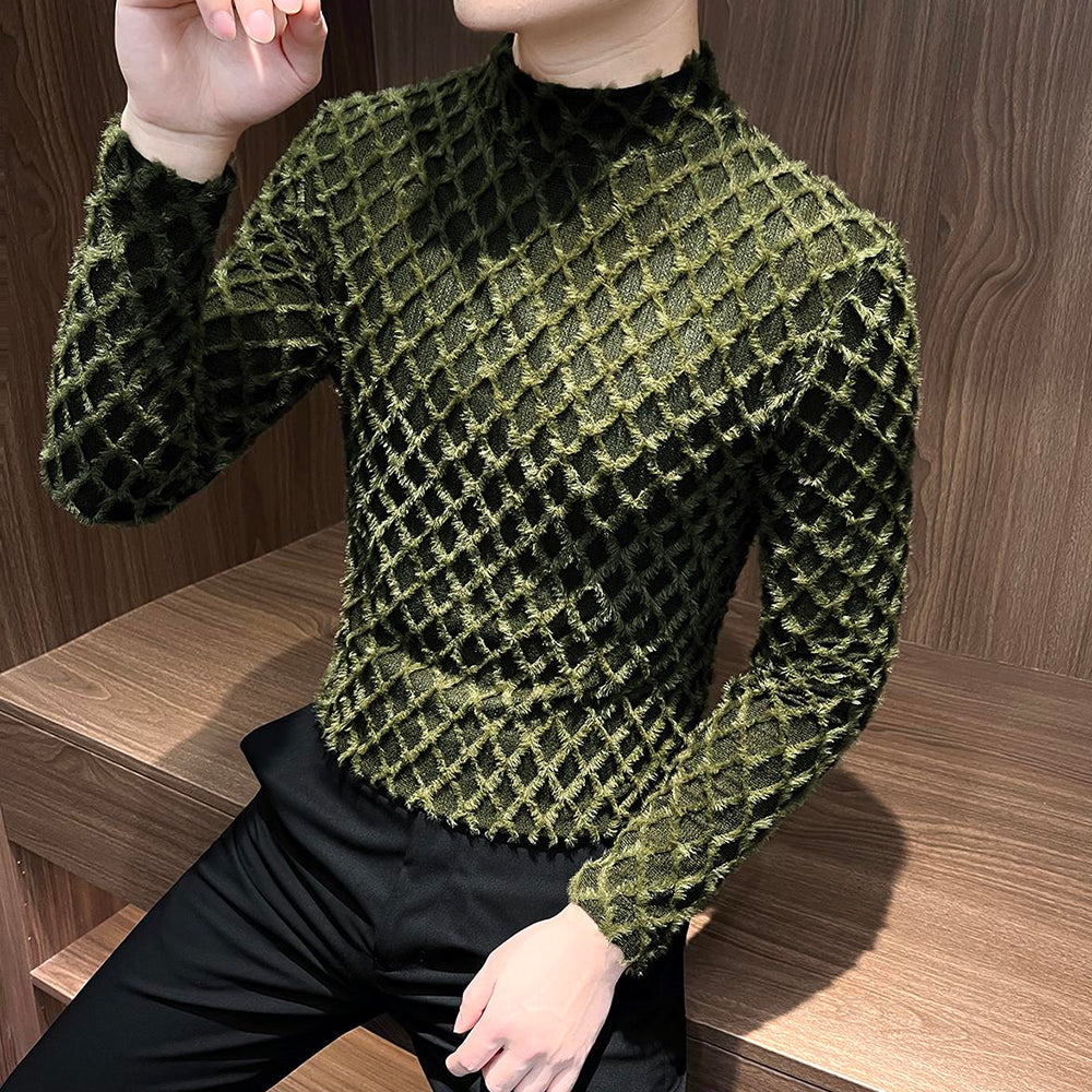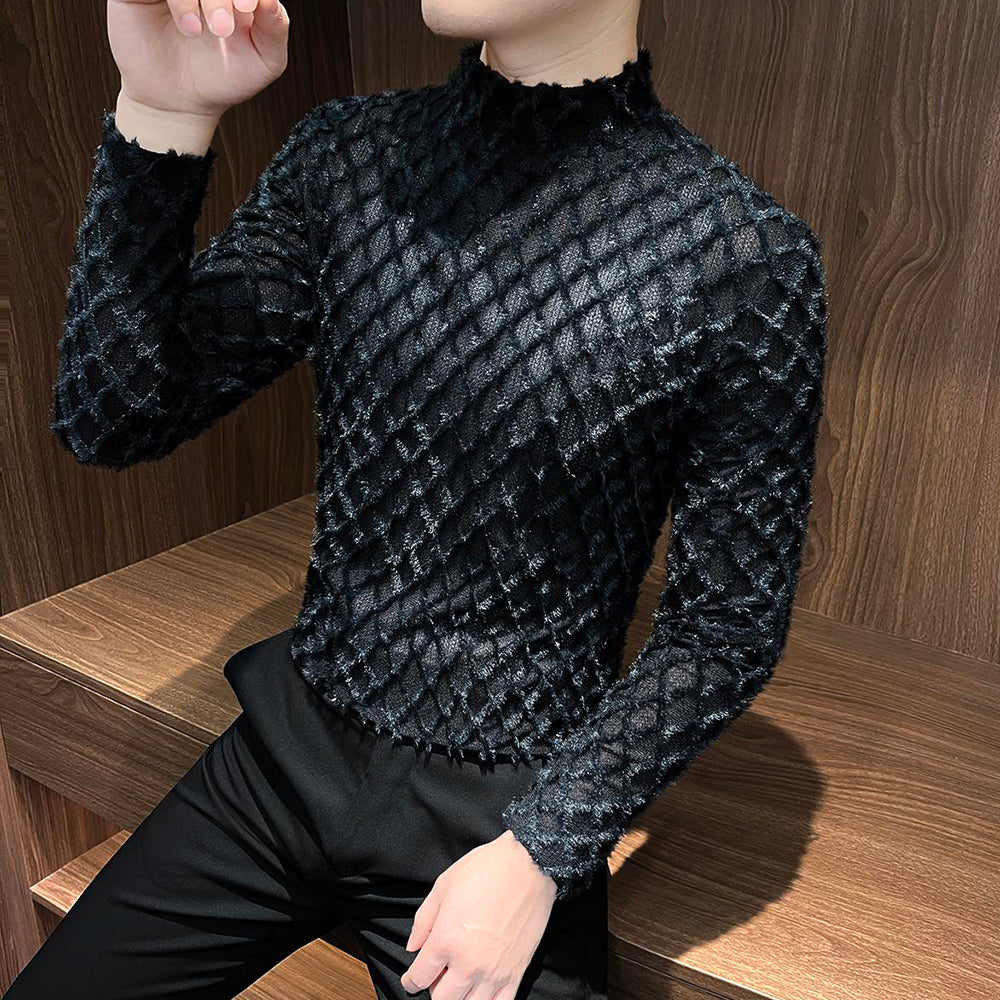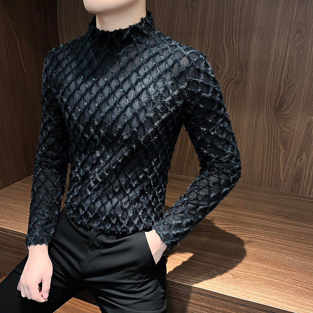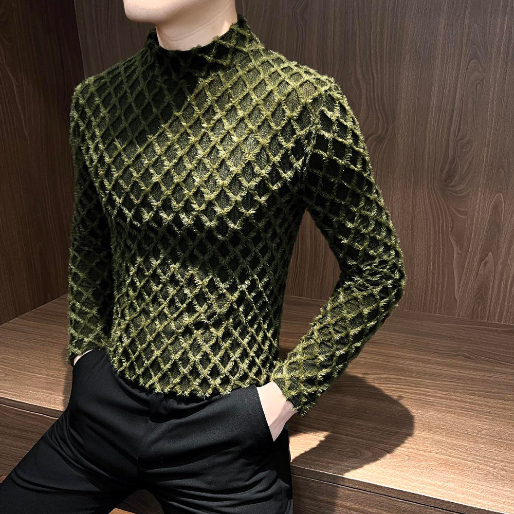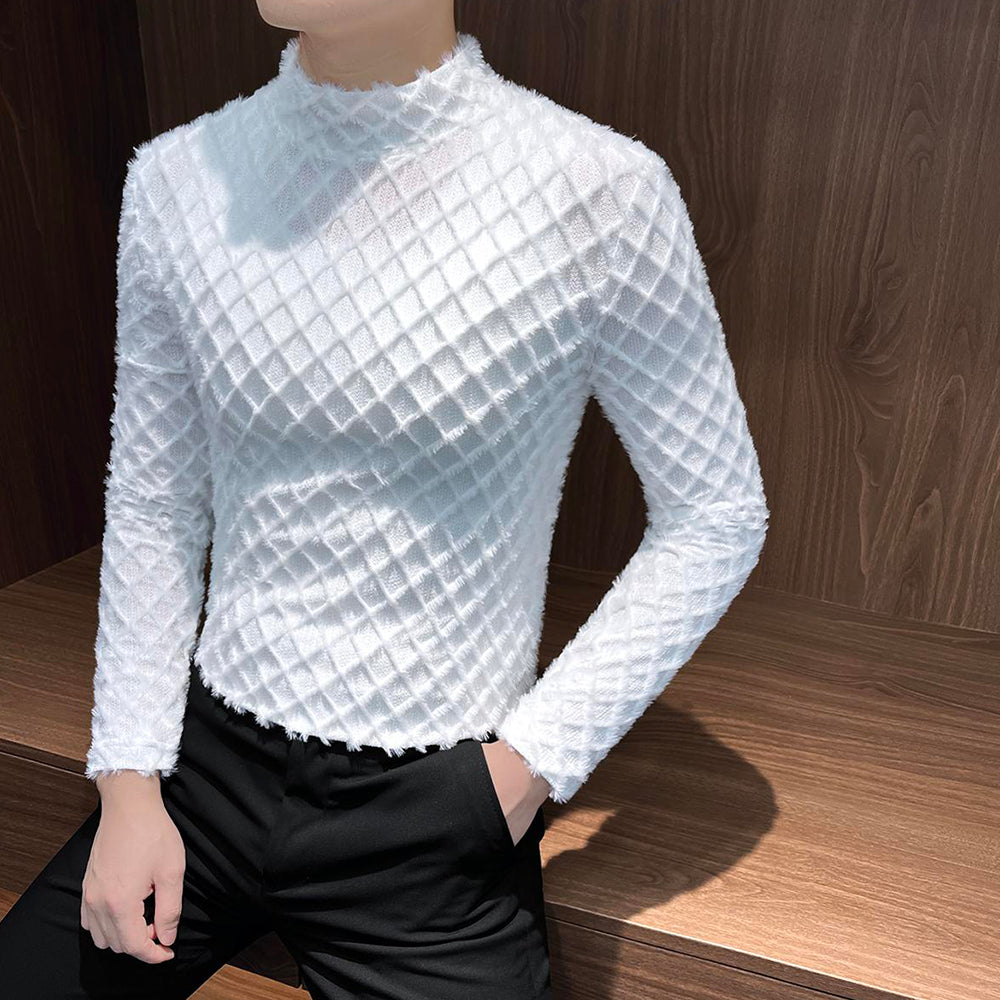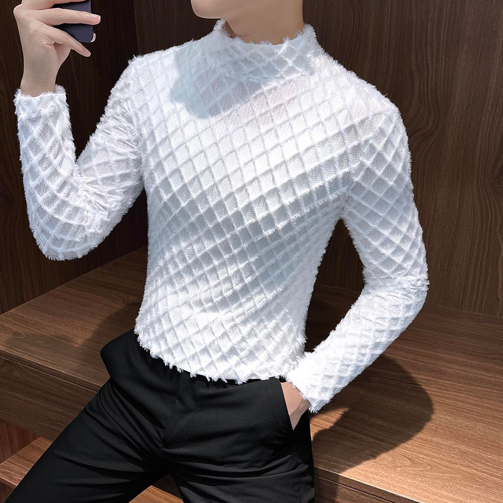 Plaid plush tassel base layer top
