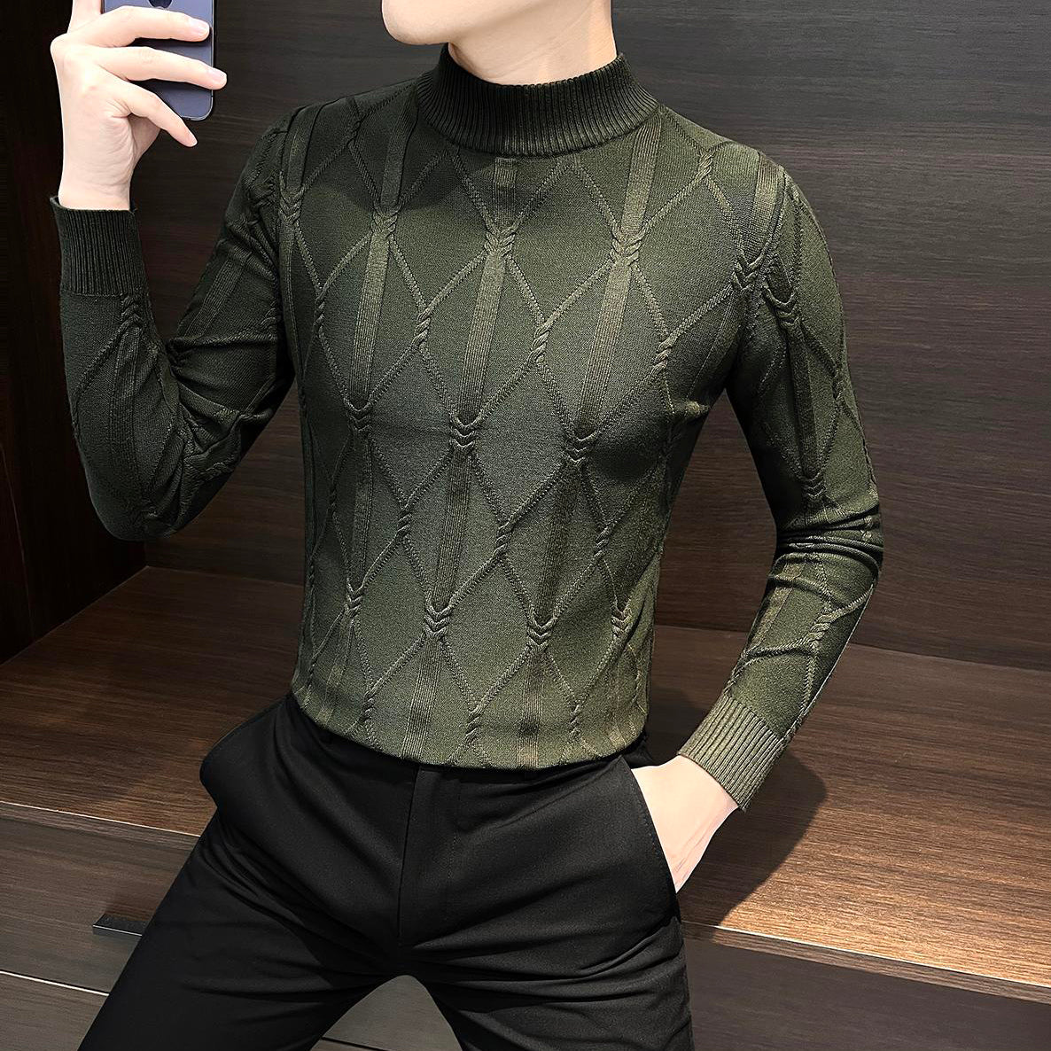 Retro textured knit base layer top