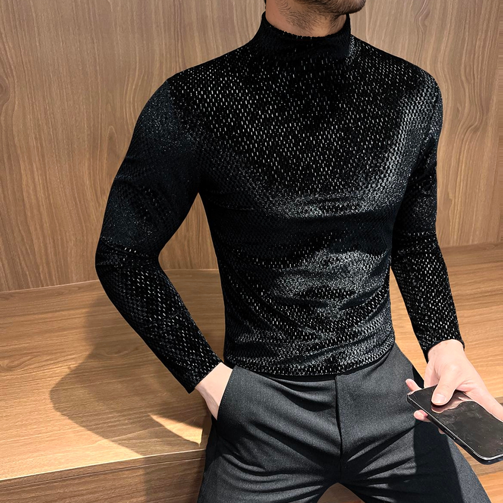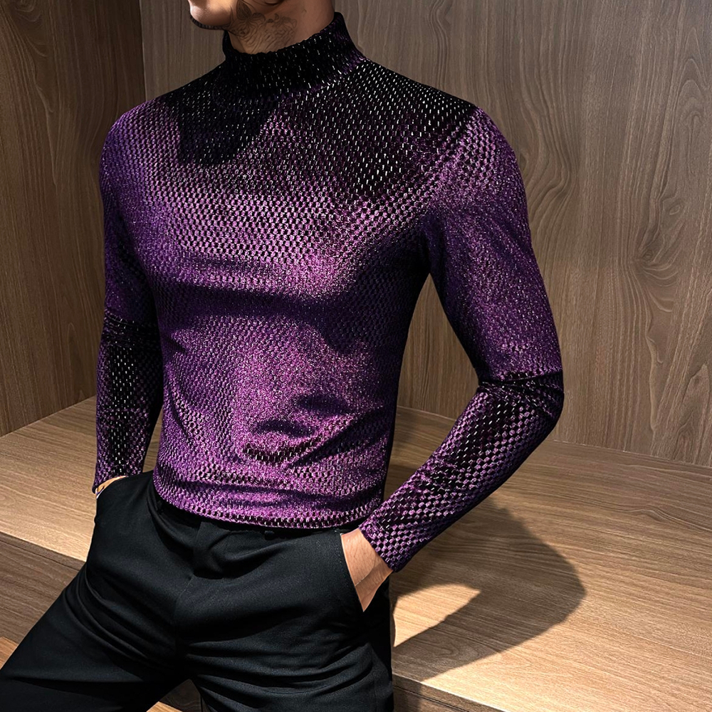 Starlight high-neck textured reflective long-sleeved top