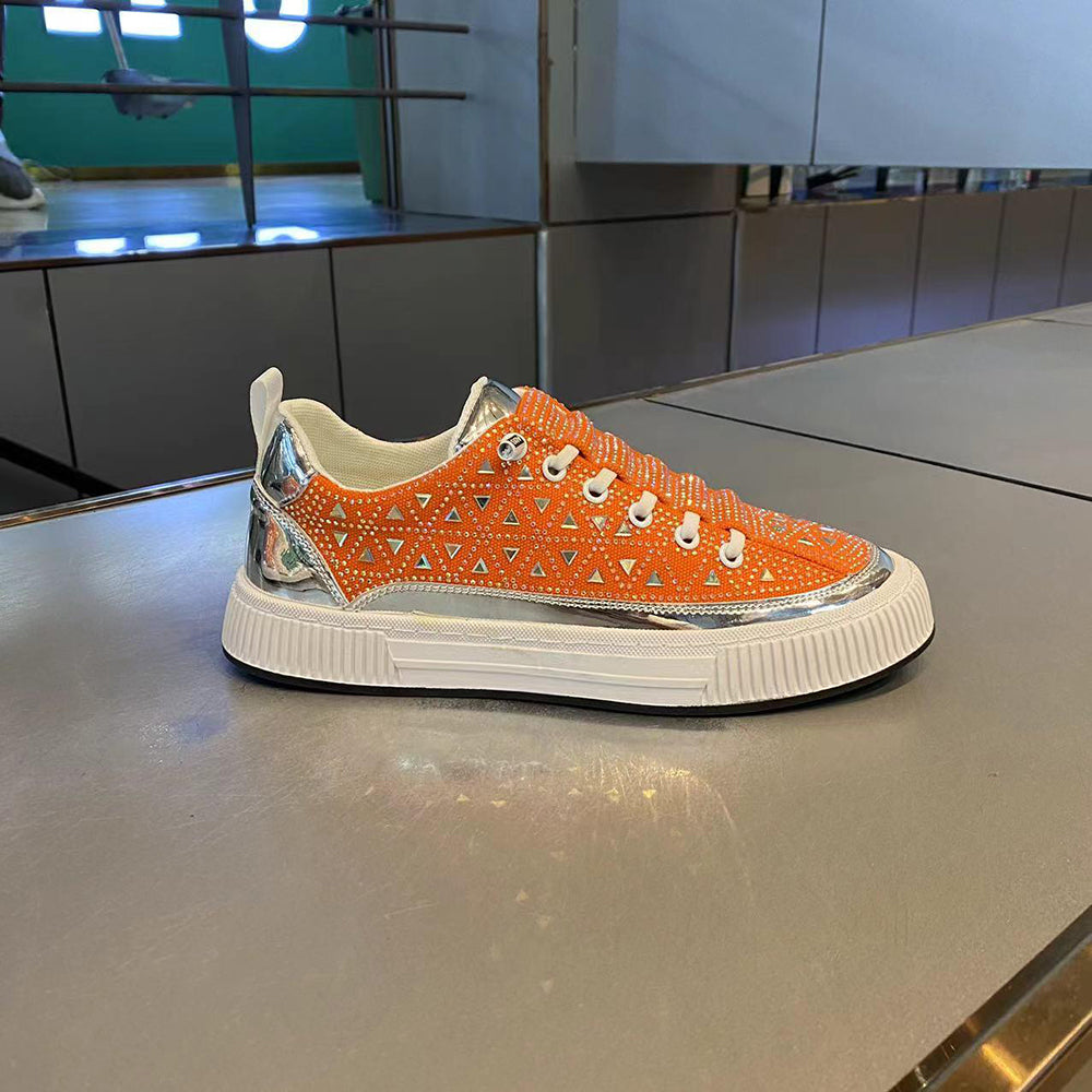 Triangle rhinestone flat canvas shoes